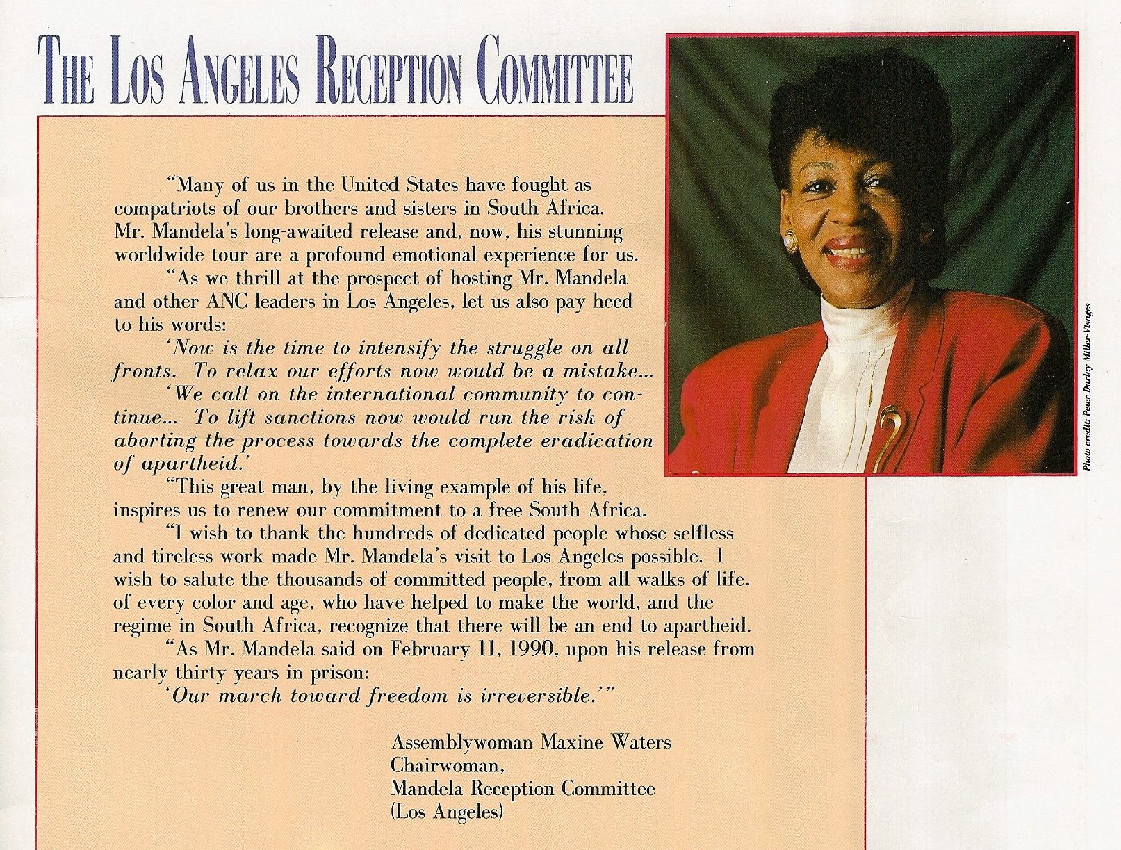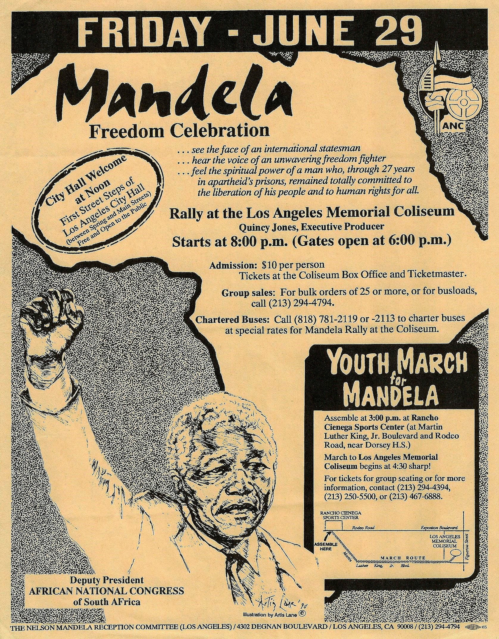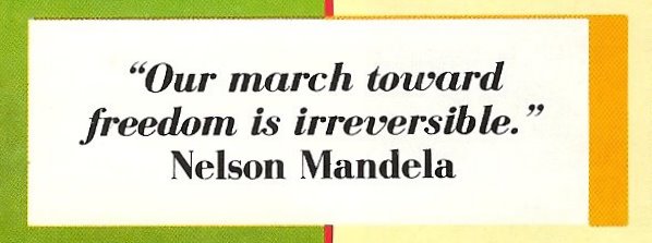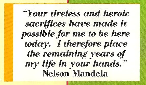 “We will not give up until apartheid gives in,” Mandela boomed to the Coliseum crowd. Mandela went on to urge the young to forsake the use of illicit drugs.”We learned that the solution was not to escape reality by resorting to drugs. “We learned that we could make our future bright by overcoming our own weaknesses and weaknesses of others,” he concluded. “Amandela! Amandela! Amandela! Amandela!”