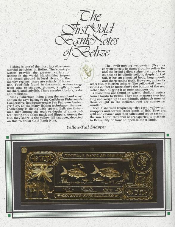THE FIRST 22kt GOLD BANK NOTES OF BELIZE 1985